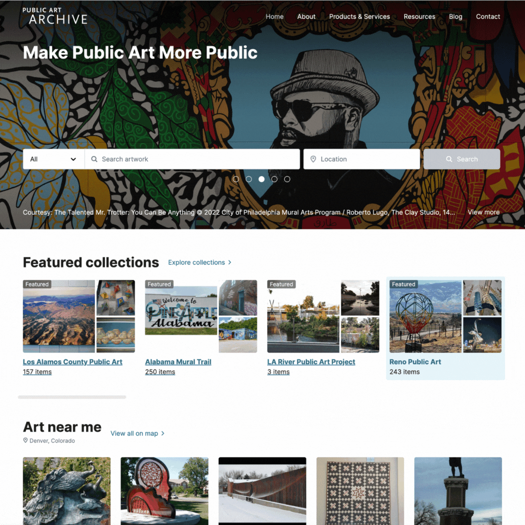As one of the largest active databases of public art, we have crafted a visually stunning experience designed for people who want to appreciate public art and find meaningful ways to engage with it. With 20,000 artwork records to explore, we invite you to dive into the new Public Art Archive. Discover the multitude of artworks spanning lived experience, geographic boundary, subject matter, and worktype in this centralized resource where street artists are presented alongside prolific sculptors and ephemeral experiences in company with traditional monuments, in your area and beyond.