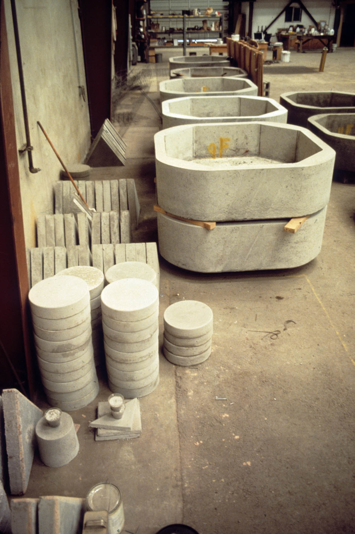 1983, Large cement mold for Walt Gordinier designed planters at Department of Veterans Affairs headquarters in Salem