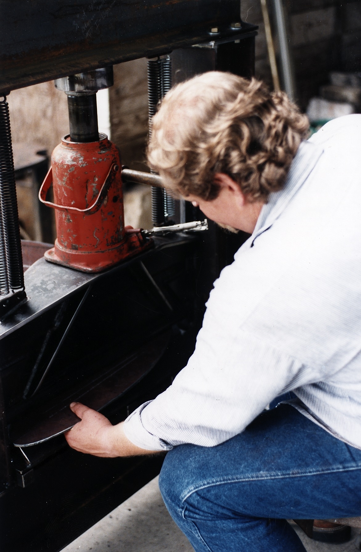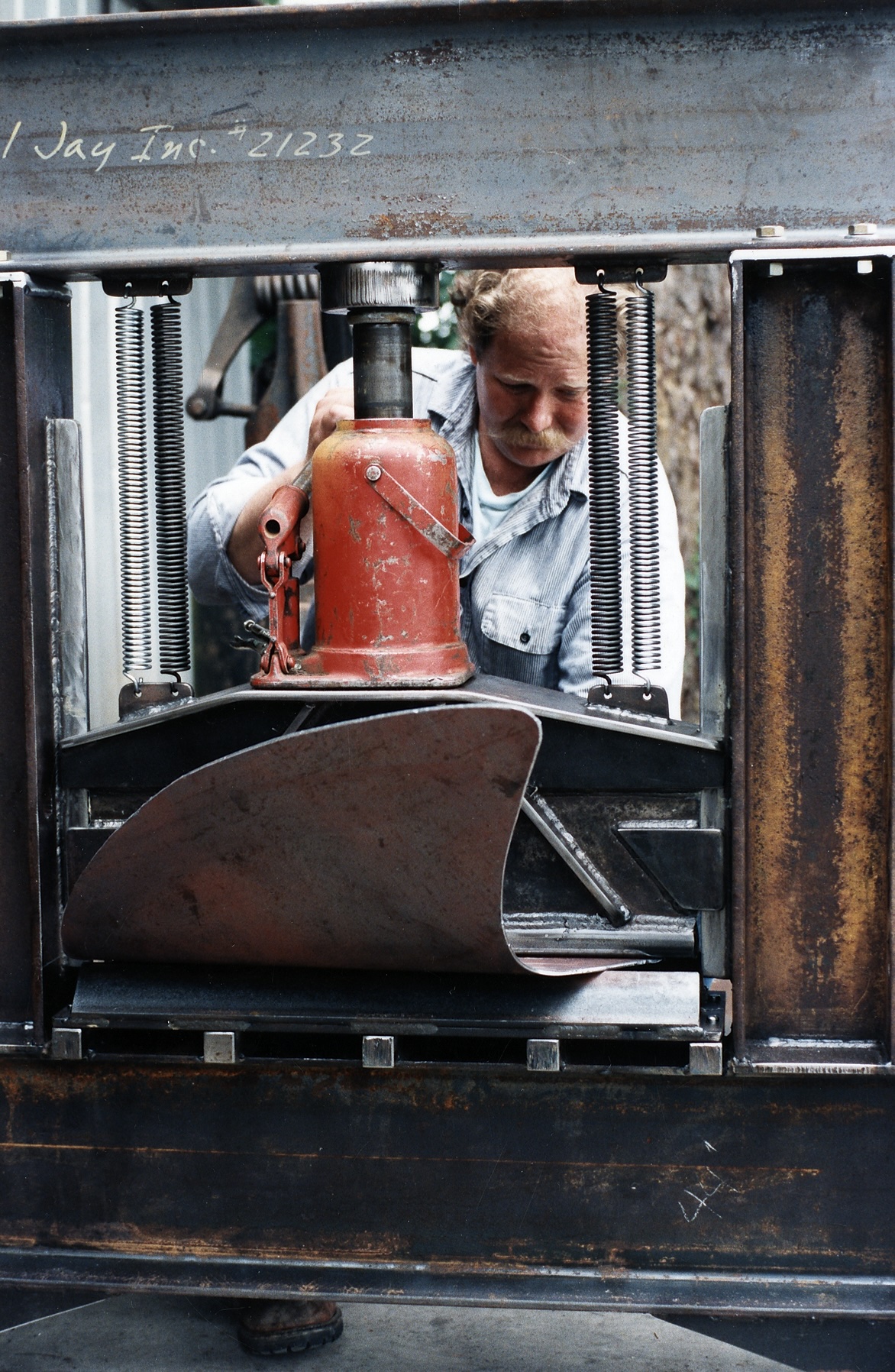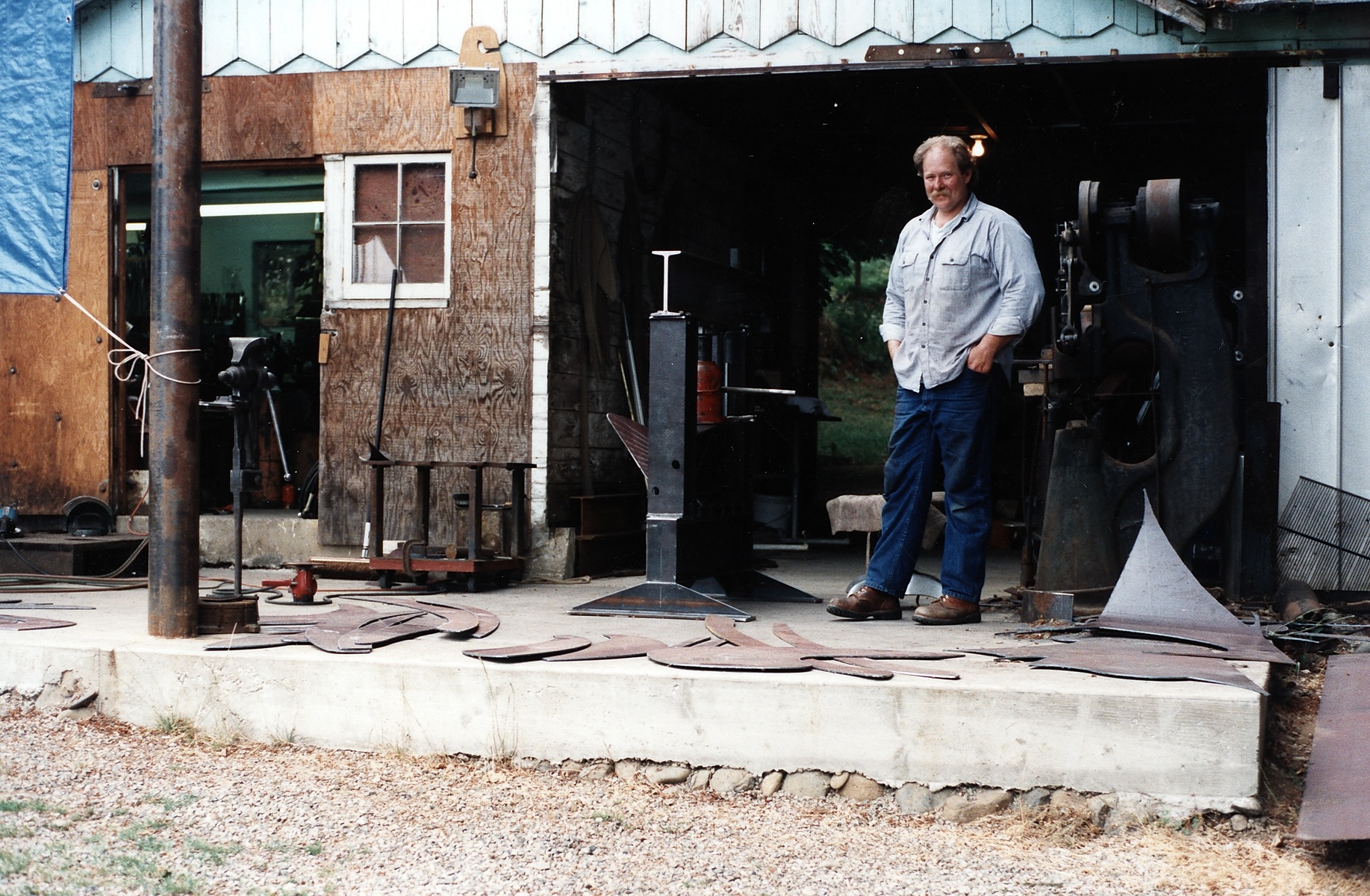 1992, William Harsey Jr. fabricating his sculpture Edged Wind for Southern Oregon University Stevenson Union