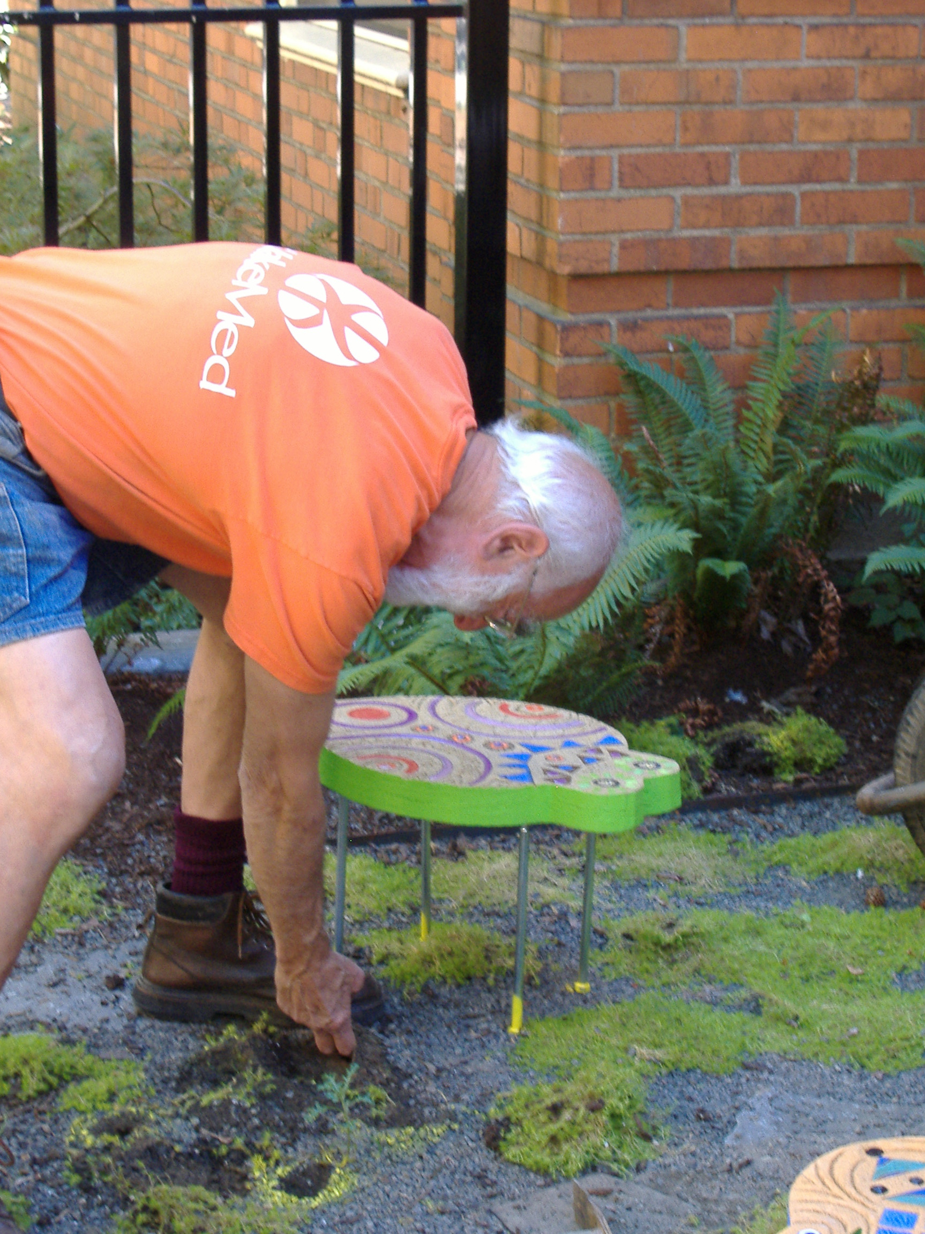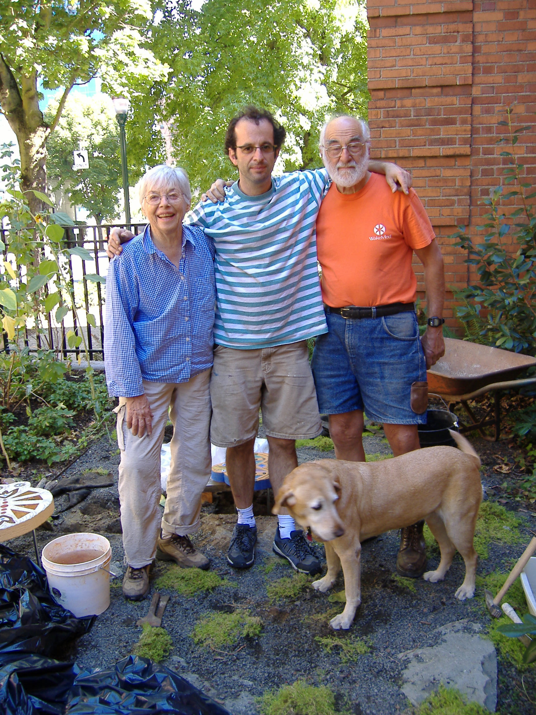 2006, Marvin Rosenberg and Lilli Ann Rosenberg installing Butterfly World and Gates at Portland State University: Helen Gordon Child Development Center
