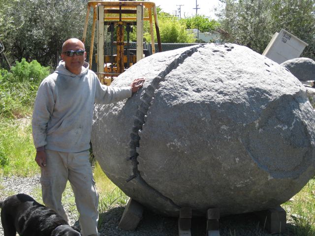 2009, Bolder for Unity and Harmony split and ready for carving by Masayuki Nagase to be installed at University of Oregon HEDCO Education Building 2009, Masayuki Nagase standing next to the bolder for Unity and Harmony to be installed at University of Oregon HEDCO Education Building Return to timeline home