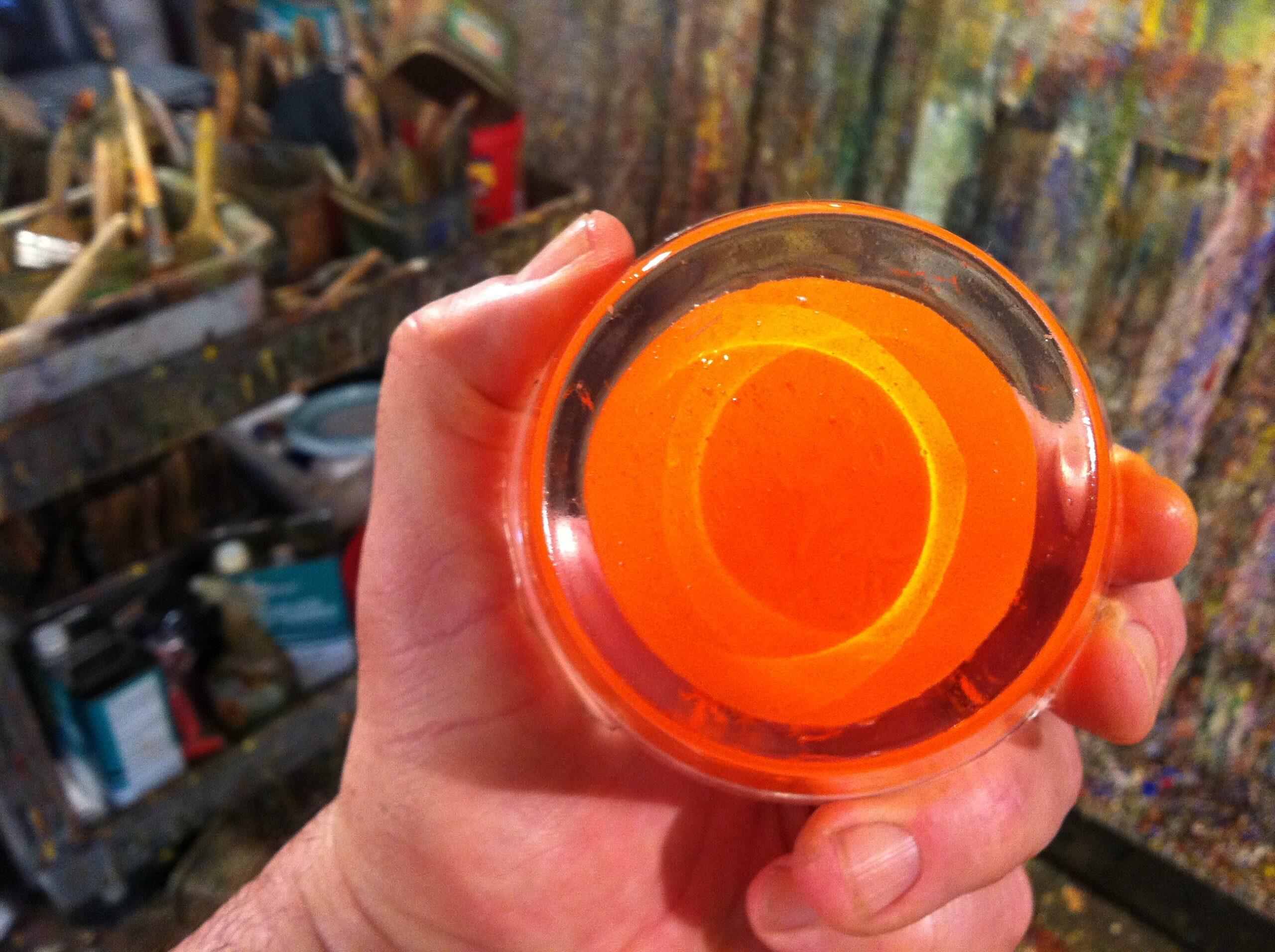 2012, Materials study for James Lavadour’s work Red River at Oregon Department of Transportation Headquarters in Salem. Lavadour’s studio can be seen in the background