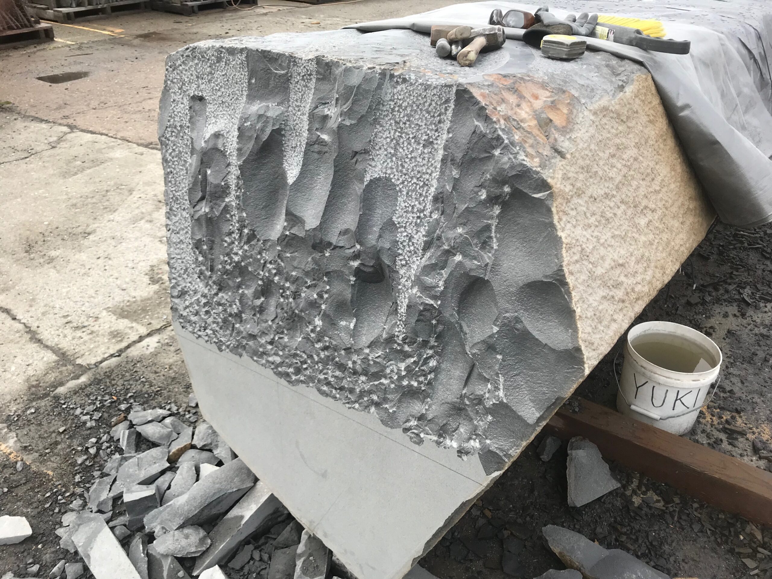 2018, Masayuki Nagase’s work Reflection of Stream at mid-point review of fabrication, seen with personalized tools Return to timeline home