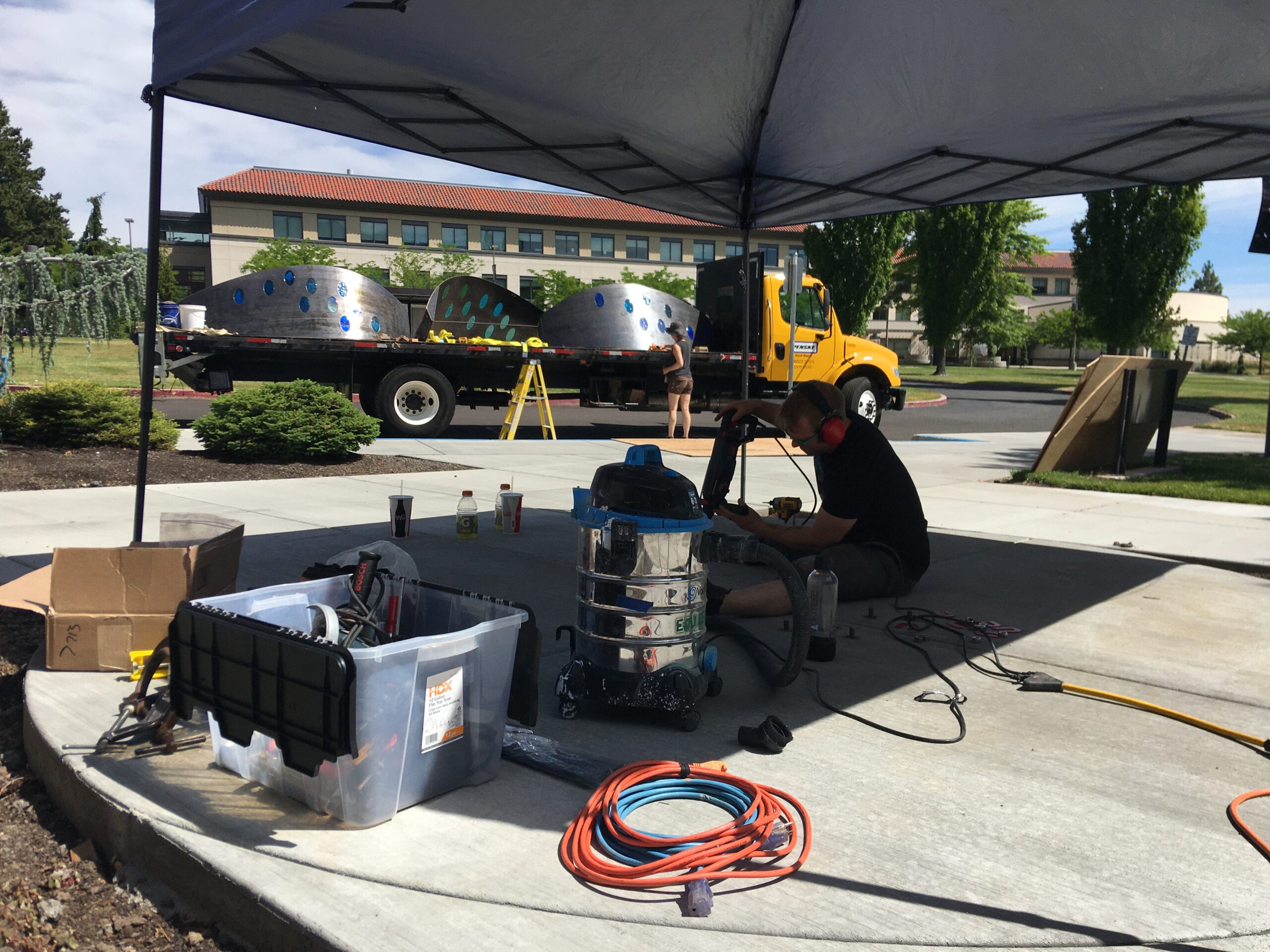 2021, From Which All Things Start by Crystal Schenk and Shelby Davis being prepared for installation