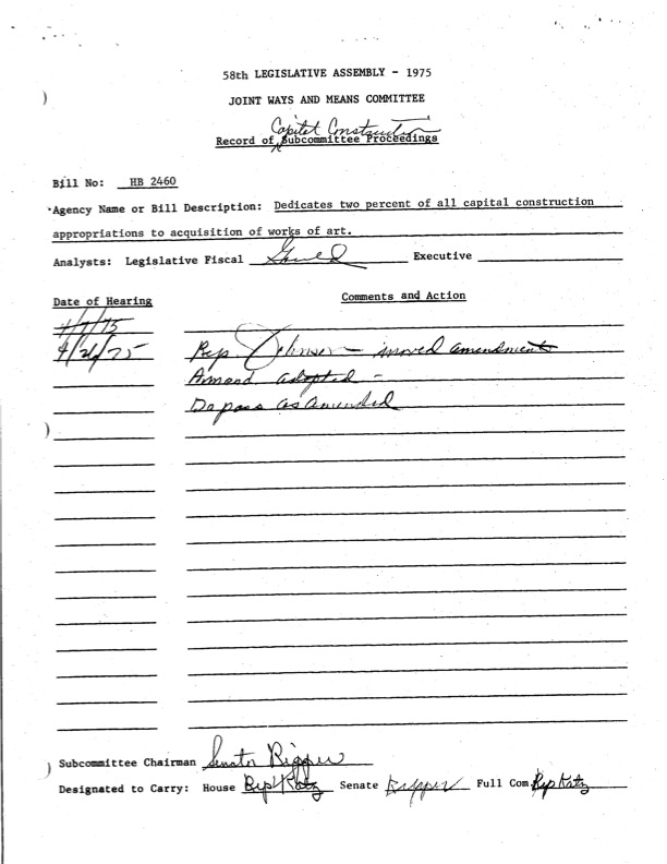 April 26th 1975, Joint Ways and Means Committee, record of subcommittee proceedings, signed by House and Senate