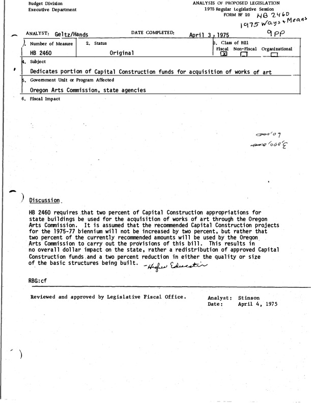 April 4th 1975, Analysis of proposed legislation from the Executive Department