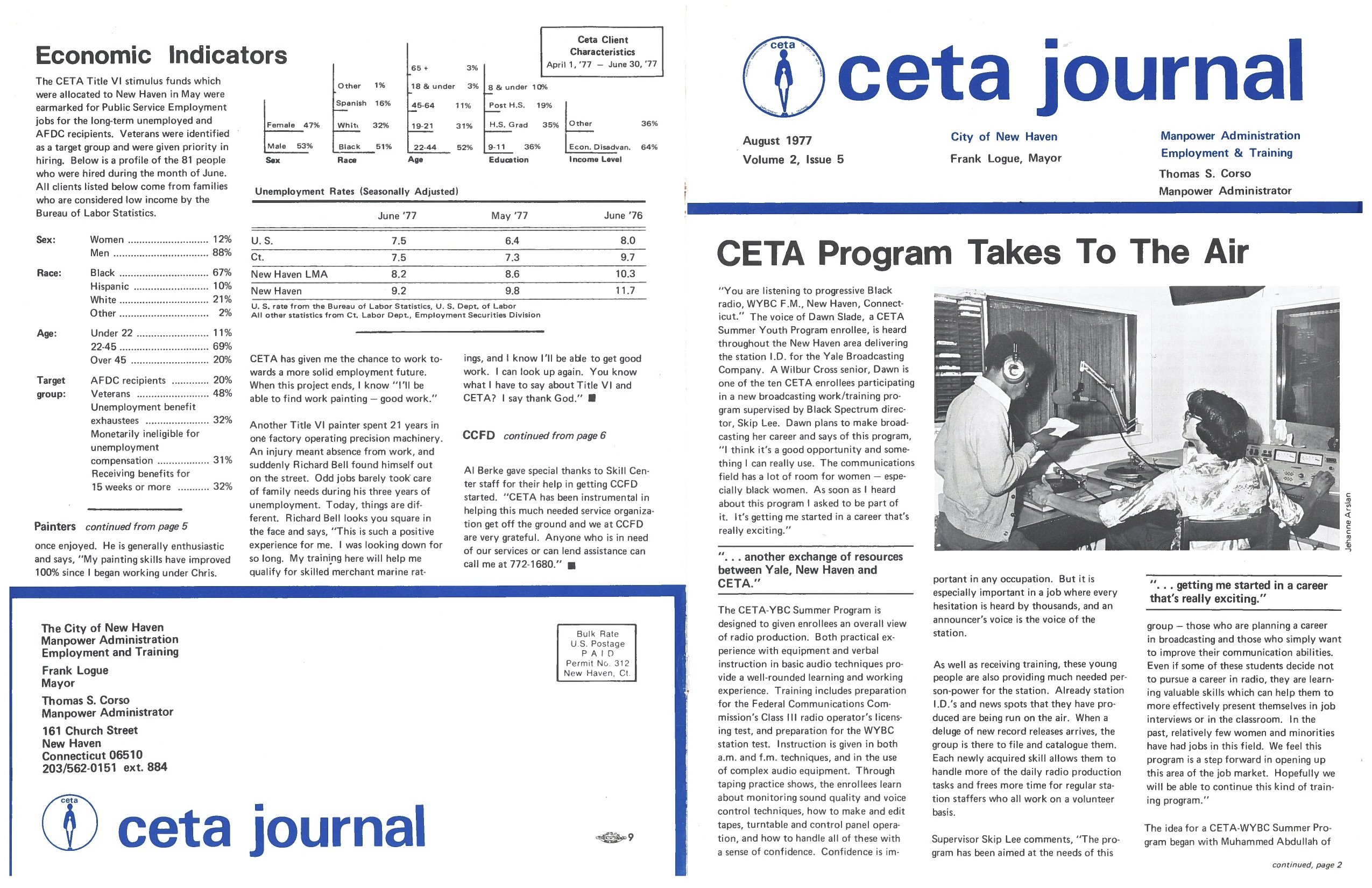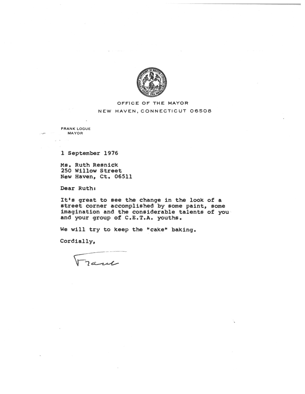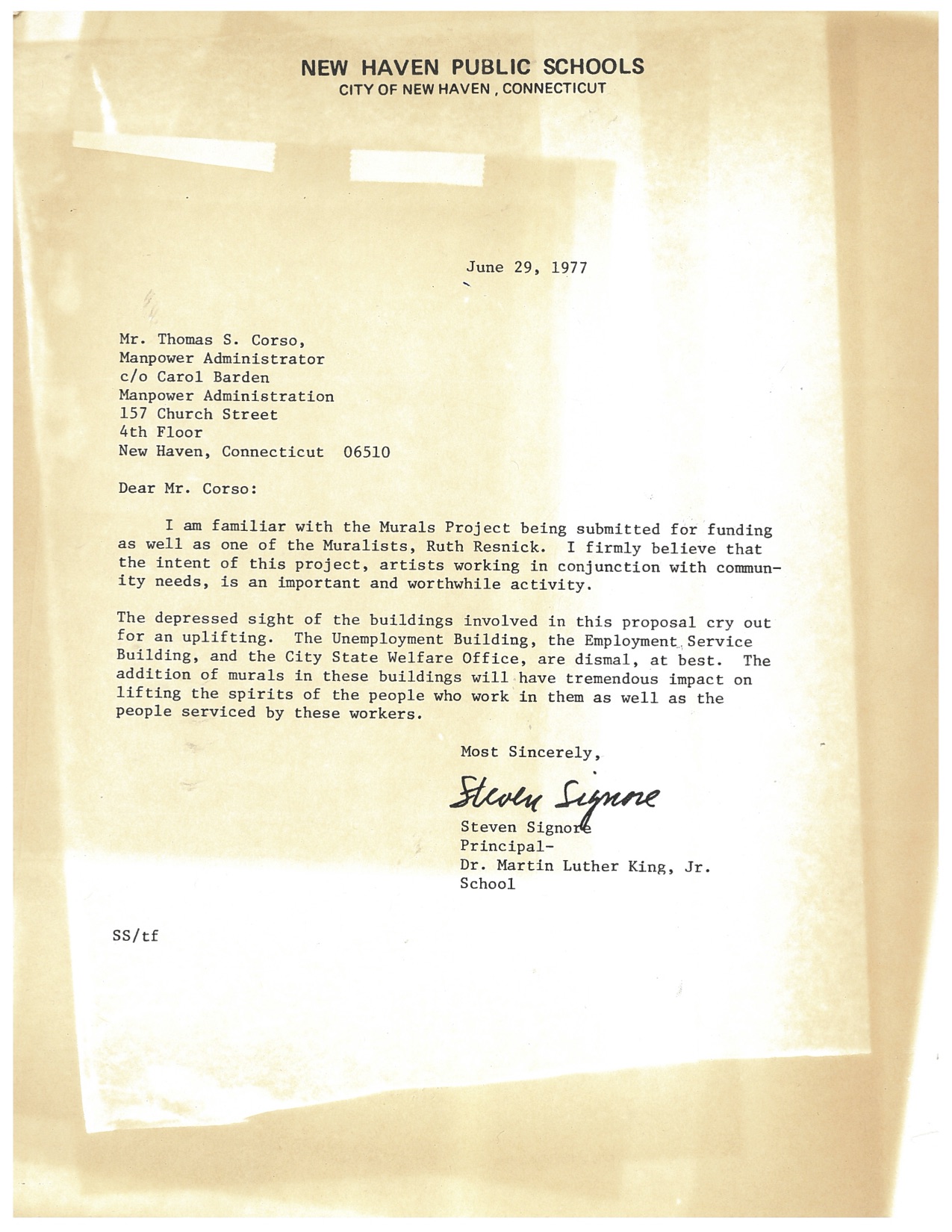 CETA projects in New Haven did not merely manifest in murals. The comprehensive program, and the way in which it was implemented, became a catalyst for new job opportunities, community engagement and enrichment programs, and conversations between community groups and the New Haven municipal government that would leave a legacy for public art throughout the city in years to come. New Haven’s CETA Murals attracted national attention – from public figures such as Joan Mondale, the wife of then Vice President Walter Mondale, and Edward Koch, the Mayor of New York City. The legacy of CETA in and outside of New Haven can be explored through the digitized archives below.