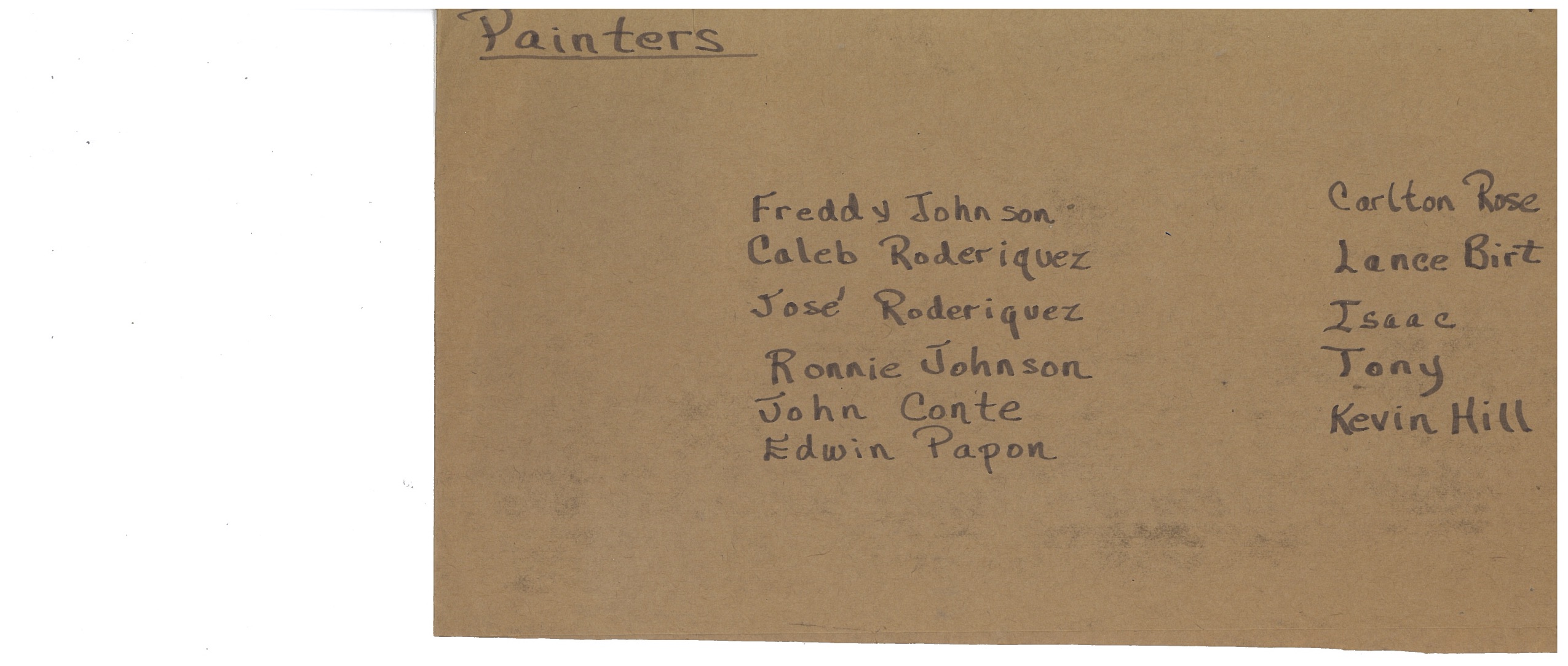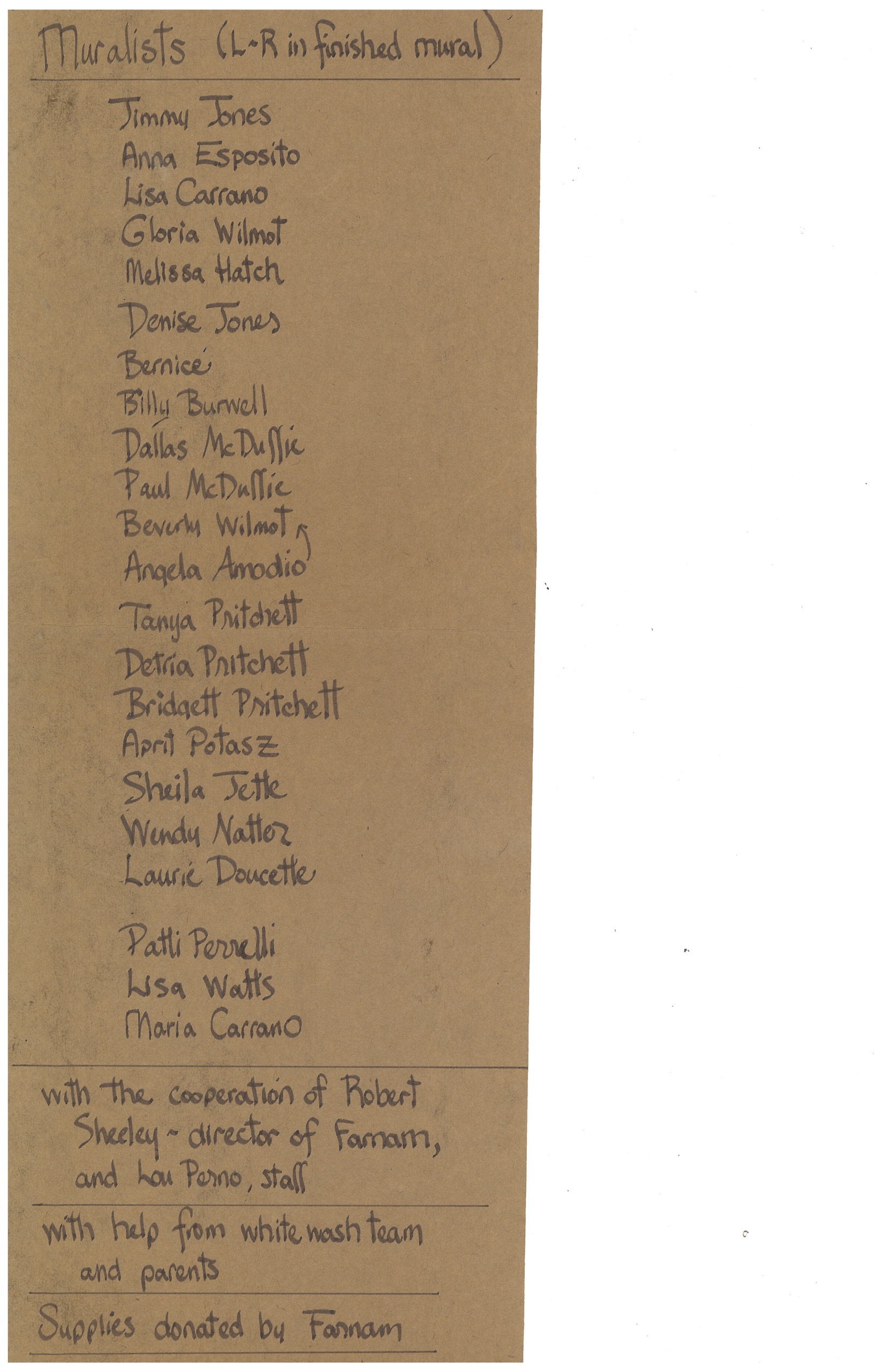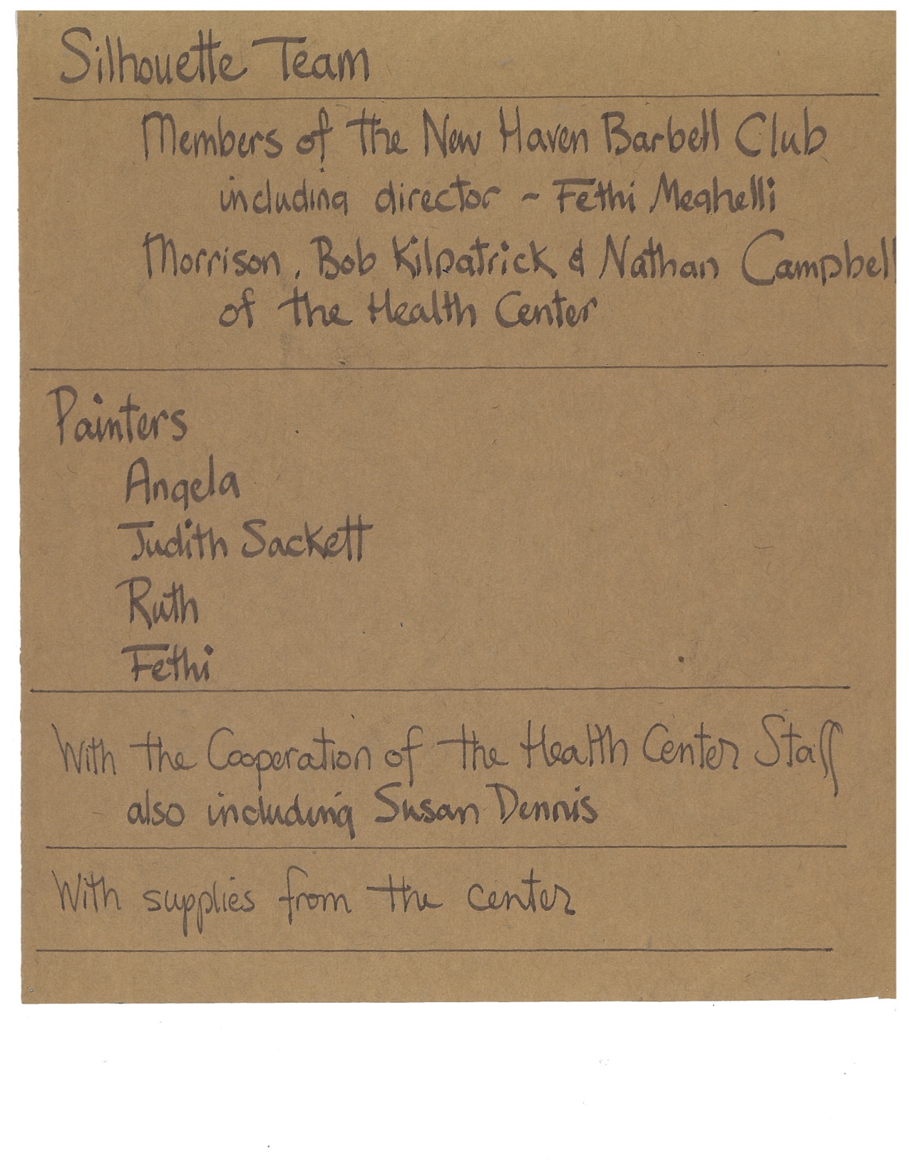 These handwritten signs, most on craft paper, were created by Ruth Resnick Johnson. Ruth captured the breadth of the CETA program in the large number of participants, volunteers and even the New Haveners who donated paint supplies and wall space. We would love to hear from anyone who worked with New Haven CETA, including the people listed here.