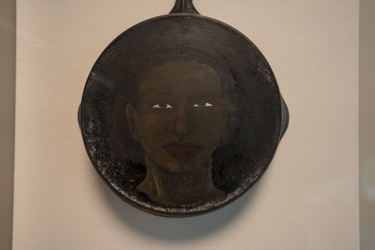 Found iron skillet with acrylic paint