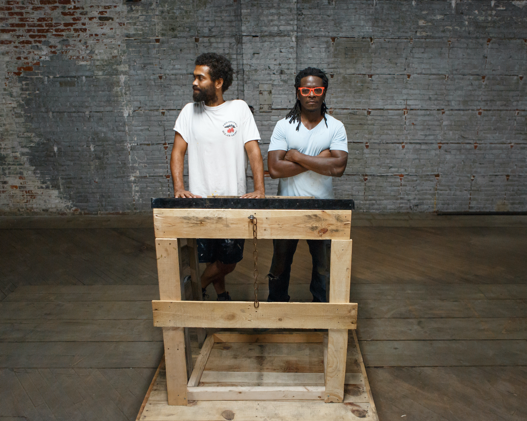 Steven and Billy Dufala practice in a variety of media, approaching sculpture, theater, performance, music, digital media, and drawing with equal passion and zeal. Their 2009 solo exhibition, Trophy, at Philadelphia’s Fleisher/Ollman Gallery, explored concepts of use-value, sentimentality, exaggeration, and shelf-life through an absurd and trash-picked lens. For the 2005 FringeArts Festival, they organized a now infamous race through the streets of Philadelphia, for which they built 14 tricycles made out of repurposed toilets. In 2004, they rode a cardboard tank across Philadelphia on city streets during rush hour, amazing pedestrians, puzzling motorists, and providing their audience a dose of dark, dark humor. In 2009, the Dufala Brothers were awarded the West Grand Prize, an international juried prize in its inaugural year. Both Dufala Brothers graduated from the Pennsylvania Academy of the Fine Arts, and they live and work in Philadelphia.