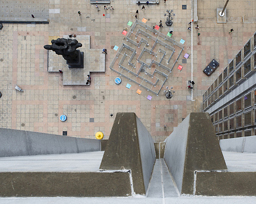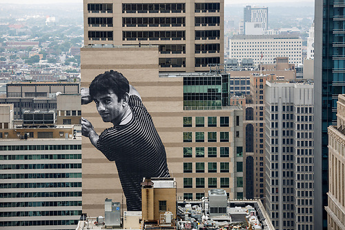 JR was born in France in 1983 and currently lives in Paris and New York City. Since 2000, JR has pasted his large-scale photographs in streets throughout the world as a method of exploring personal identity. By merging photography with street art, JR covers entire buildings, walls, streets and other unconventional surfaces with his wheatpasted portraits, creating what he calls “pervasive” art. His work addresses important social issues and gives a voice to the underrepresented. In 2011, JR won the TED Prize and launched Inside Out, an international participatory art project that allows people worldwide to get print and wheatpaste their own photographs. JR has had solo exhibitions at museums including the Dallas Contemporary and the Contemporary Arts Center, Cincinnati, and his posters have been installed outdoors in multiple continents: North America, South America, Africa, Europe, and Asia.