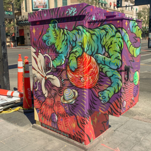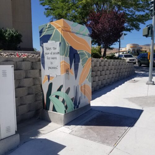 The City of Reno’s Arts & Culture Department started painting signal boxes in 2008, mostly in the downtown Reno area. The program has grown to include nearly 100 painted signal boxes citywide, including the North and South Valleys.